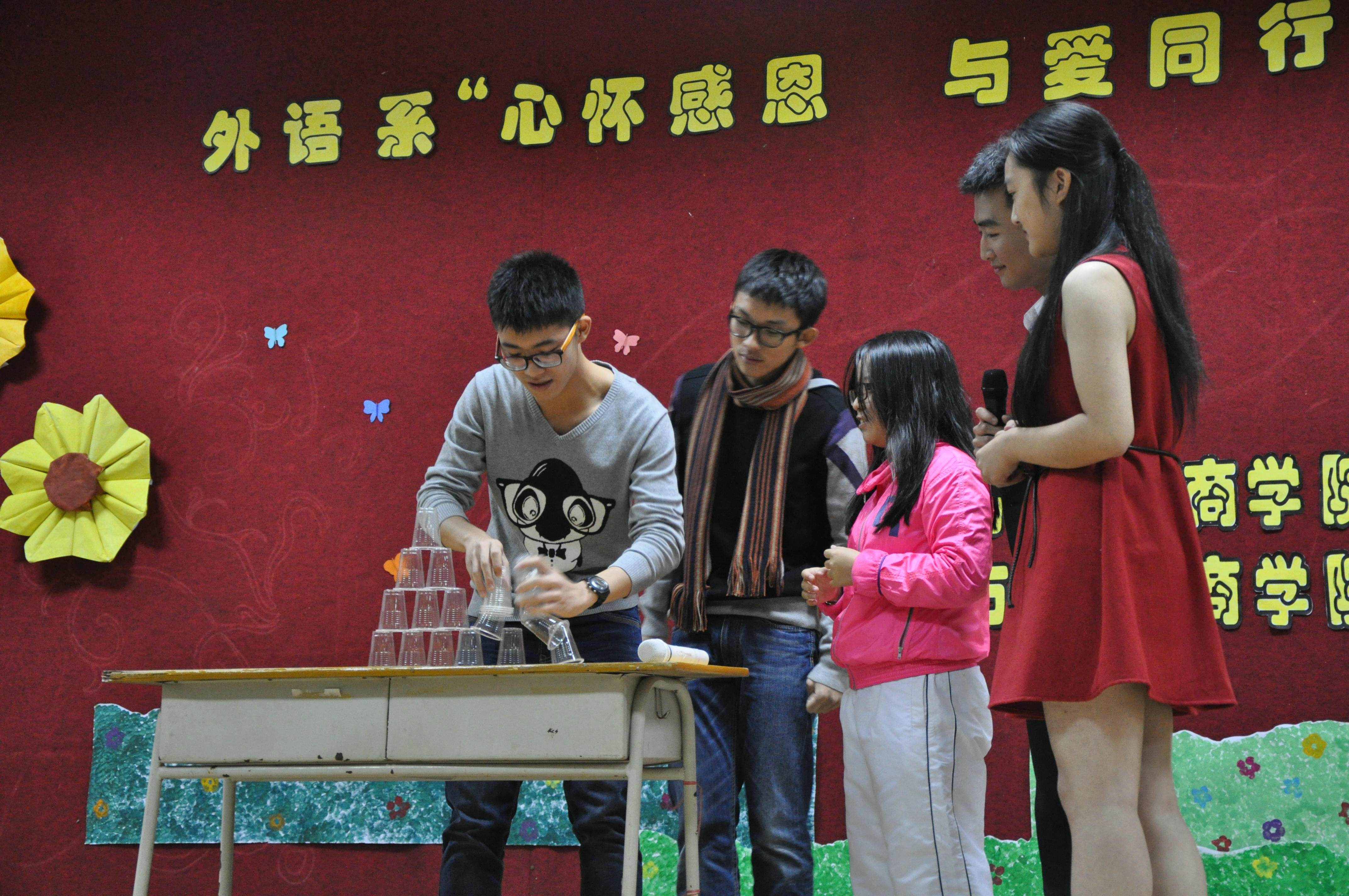 感恩,这两个普通的字,却包容着所有善良的心。感恩,这份平凡的感情,却道尽了世间一切哲理。在温馨感动的时光里,外语学子用歌声祝福学院的蓬勃发展,感谢她为广商人遮风挡雨;用舞蹈祝福是师长平安快乐,感谢师长的谆谆教诲和体贴照顾。