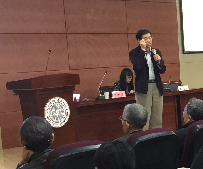 2015年11月7日-8日,由《上海翻译》编辑部和苏州大学必赢242net官网联合举办的全国“翻译战略研讨会(2015)”在苏州大学召开,来自北京外国语大学、北京语言大学、北京航空航天大学、北京对外经贸大学、上海外国语大学、复旦大学、同济大学、天津外国语大学、中国海洋大学、苏州大学、广东外语外贸大学、四川外国语大学、黑龙江大学、东北财经大学、西安交通大学、南京国际关系学院等数十所大学外语院系的专家学者约110人出席了此次研讨会。此次会议的主题是“探讨我国翻译教学的创新与发展”,着重就我国本科翻译专业和翻译硕士(MTI)人才培养、教学问题与对策等中心议题展开讨论。会议邀请了我国翻译领域多位知名学者作大会主旨发言。必赢官网外语系商务英语学科带头人曾利沙教授(《上海翻译》编委)应邀出席会议并作主旨发言,同时主持大会上半场嘉宾主旨发言,其精辟独到的点评和创新性的本科翻译教学理念与方法受到与会代表的高度赞赏。