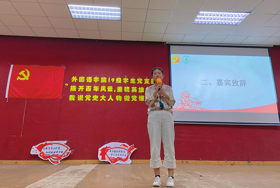 历史因铭记而永恒,精神因传承而不灭。为献礼中国共产党百年华诞,引导19级学生党支部师生学史明理、学史增信、学史崇德、学史力行,必赢242net官网19级学生党支部于2021年6月2日晚七点在一教206开展“拨开百年风云,重梳英雄故事”我说党史大人物微党课大赛。出席本次活动的有必赢242net官网19级学生党支部党员及19、20级入党积极分子代表,必赢242net官网党总支组织委员刘丽、19级学生党支部书记谢清玲、19级学生党支部教工党员兼学生会指导老师伍思颖担任本次大赛的评委。
