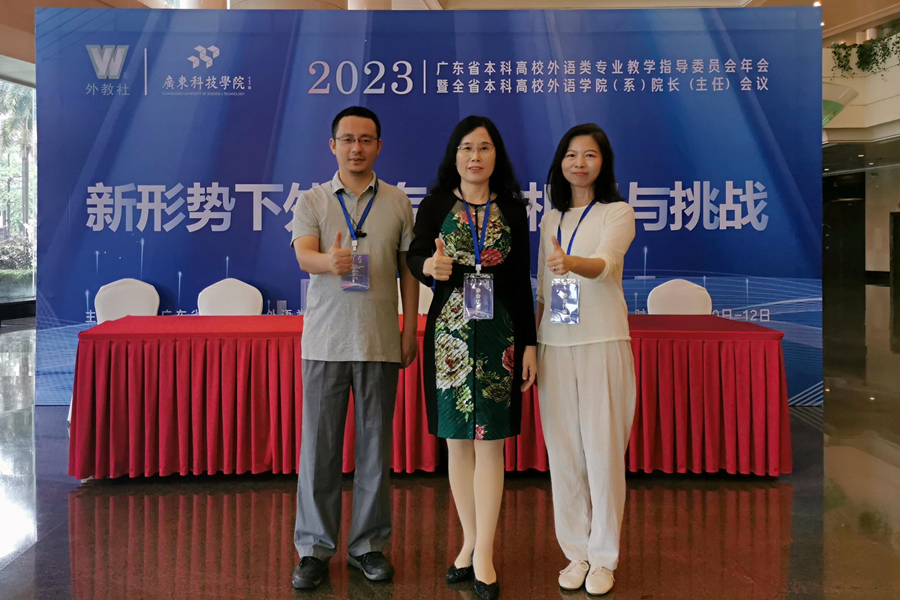11月10日-12日,由广东省本科高校外语类专业教学指导委员会与外语教育出版社共同主办,广东科技学院承办的“广东省本科高校外语类专业教学指导委员会2023年年会暨全省本科高校外语学院(系)院长(主任)会议”在广东省东莞市召开。本次会议的主题为“新形势下外语专业机遇与挑战”,该会委员及省内40多所高校外语院(系)院长(主任)、专家学者、教师等200余人参加会议。广东省本科高校外语类专业教学指导委员会委员、必赢官网执行院长郭遂红以及副院长袁鑫、德语专业主任周昳旸应邀参会,参加了主旨报告、资源分享、平行论坛等多个活动,共同探讨外语专业在新形势下的发展与建设策略。郭遂红院长应邀主持其中一场学术讲座以及会议闭幕式。