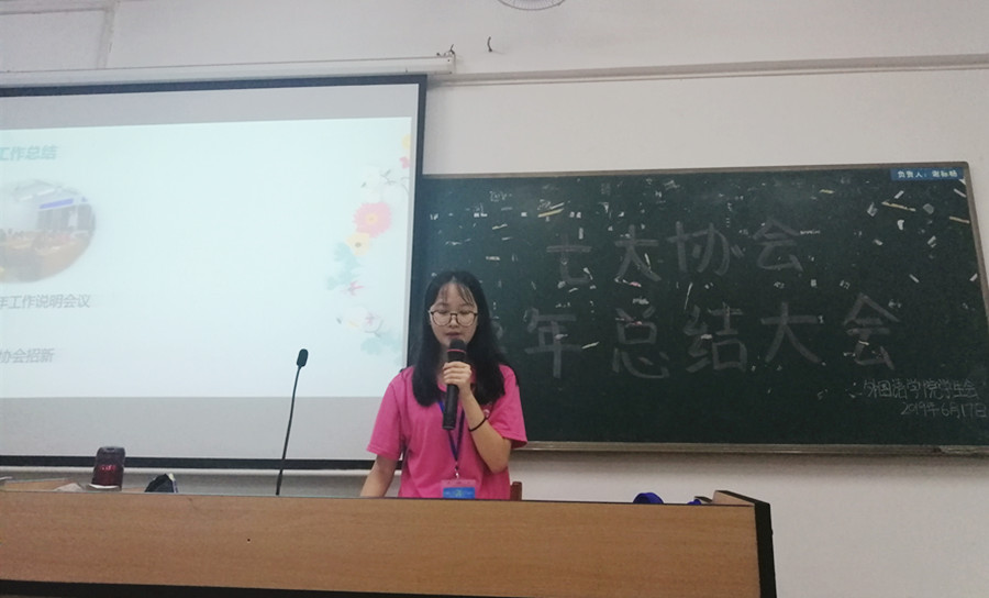 为了更好地总结回顾协会组织工作,营造鲜明的外院文化特色,必赢官网学生会于6月17日晚上7点在五教205召开了七大外语协会2018-2019学年总结大会,出席本次会议的有学生会社团部部长王泽琳、副部长赖玉莹以及七大协会的代表们。