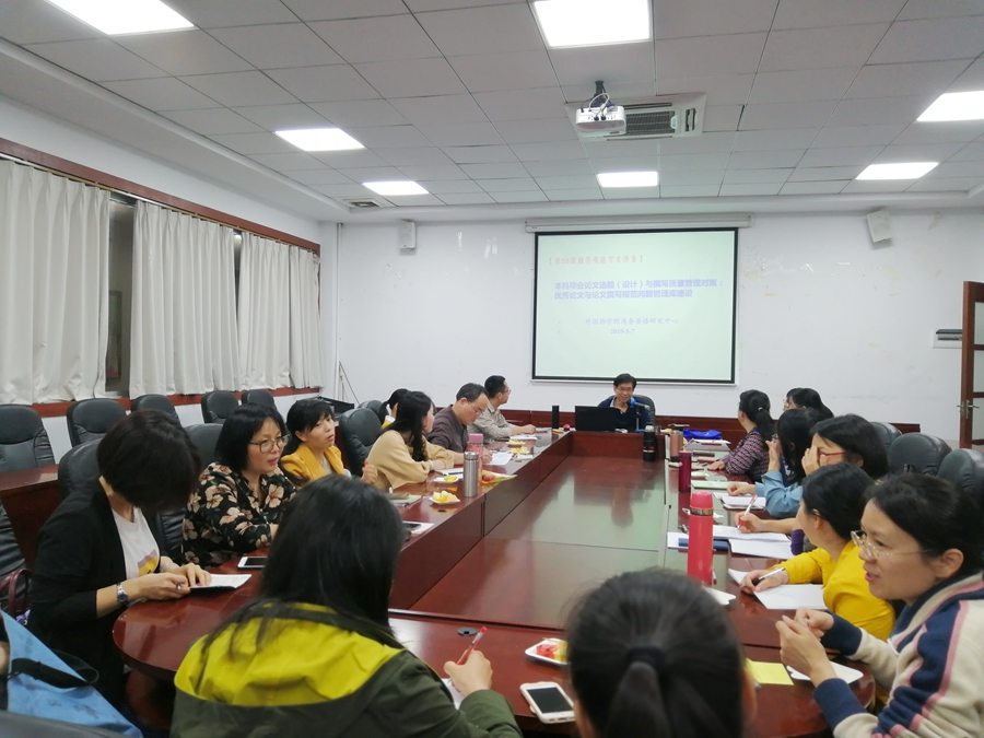 5月8日,必赢242net官网在第二行政楼308会议室召开第58期商务英语少龙。 本期沙龙由商务英语学科带头人曾利沙教授主持,主题为 “本科毕业论文选题(设计)与撰写质量管理对策:优秀论文与论文撰写规范问题管理库建设”。必赢242net官网副院长袁鑫、龙海英和商务英语系全体教师出席了沙龙研讨。