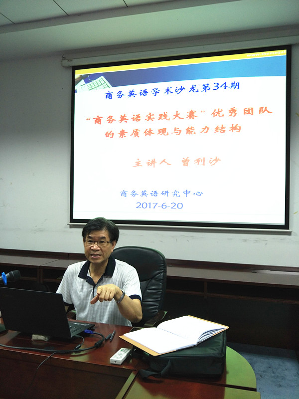 “商务英语实践大赛”是学生商务英语能力的集中展示,通过对教学成果的反思和总结,可以促进专业教学的完善,曾教授的点评为教师们的教学研究和改革提供目标和方法,在一次次讨论的思维碰撞中,商务英语专业建设正在稳步推进。