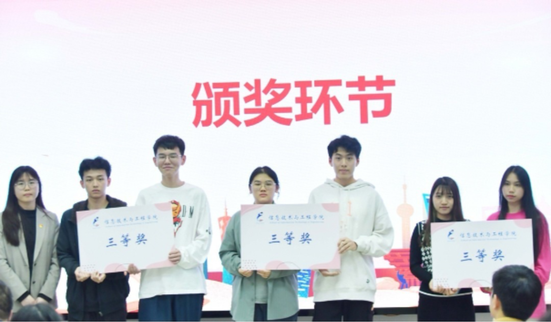 本次决赛包括两个部分:第一部分为自我介绍,限时一分钟;第二部分为定题演讲,主题为“Love My Major, Love My Motherland”,限时三至八分钟。比赛过程中,参赛选手用专业的知识储备、流畅清晰的语音、良好的台风赢得了观众的阵阵掌声。最终,来自软工火链2203班的郑愉桐以优异的表现获得一等奖。唐海民老师、姚丽芳老师、朱国华老师分别为一、二、三等奖的选手颁奖。