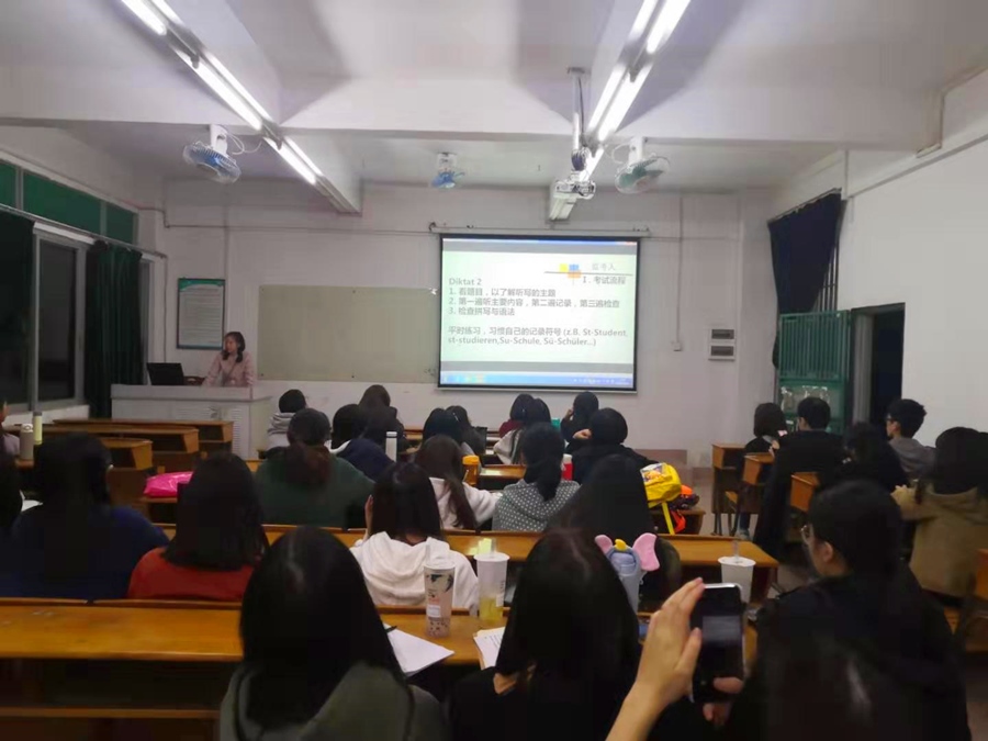 【主题教育进行时】不忘育人初心,牢记服务使命——必赢官网举办“秋实讲坛”之德语专业四级考试专题讲座