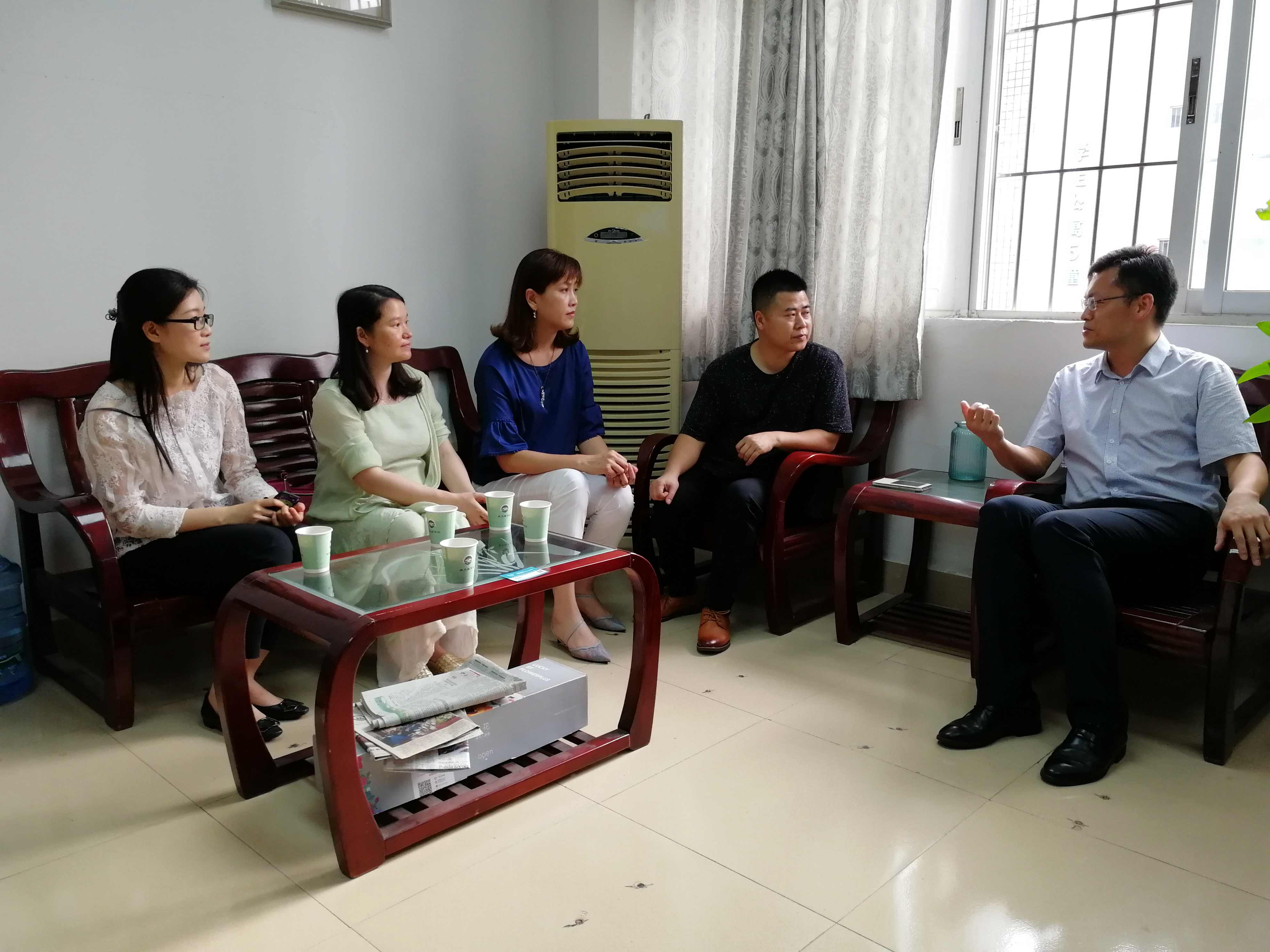 2018年5月3日下午4:30,在第二行政楼301室,必赢官网郭航、袁鑫副院长热情接待了广州华蒙教育信息咨询有限公司总经理崔纪恒、广州市爱因奇教育咨询有限公司总经理陈丽华一行。