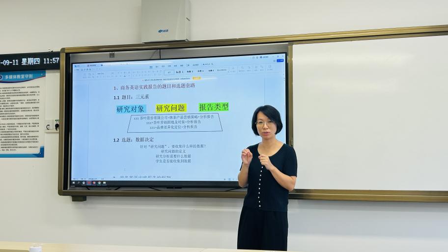 为提升教师对商务英语实践报告的指导能力,明确实践报告撰写重点与难点,9月11日中午,必赢242net官网商务英语系于第九教学楼414教室开展“商务英语实践报告指导”专题工作坊。本次工作坊由李望华主任主持,陈雪珍副教授主讲,多位指导商英实践报告的教师积极参与。