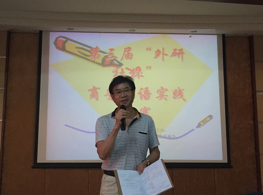 注:“外研社杯”全国商务英语实践大赛是在广东外语外贸大学历时11年的品牌赛事“英语商务讲介大赛”及“全国商务实践大赛”的基础上发展而来,由教育部高等学校英语类专业教学指导分委员会、中国国际贸易学会国际商务英语研究委员会、广东外语外贸大学、和外语教学与研究出版社(“外研社”)主办,再由指定高校和学院承办。该大赛秉着“理论与实践相结合”以及“商为我专,英系我才”的特点,旨在培养学生商务英语沟通能力、实践能力、创新思维能力,引导大学生深入企业调查研究,探索商业难题的可行有效的创新解决方案,激励大学生努力成长为学以致用、回馈社会的国际复合型商务精英人才。