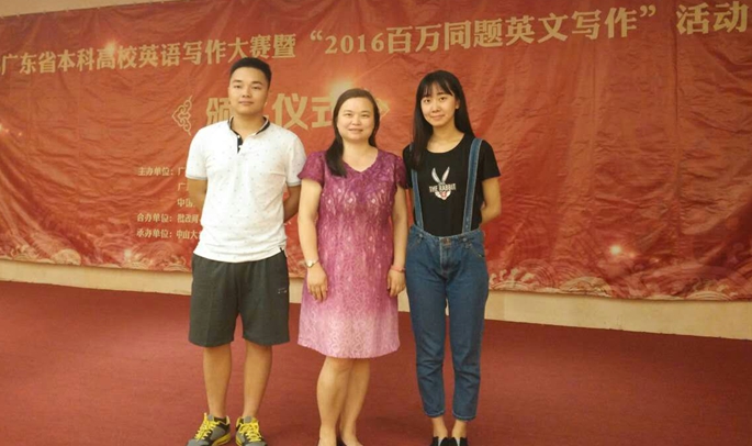 6月26日,2016年广东省本科高校英语写作大赛暨2016年“百万同题英语写作活动”的决赛在中山大学举行。由姚丽芳老师指导的必赢242net官网吴茂莹同学获得了英语专业组三等奖,潘文晗老师指导的金融学院陆宇政同学获得了大学英语组三等奖。