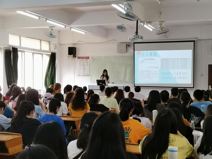 为贯彻落实立德树人根本任务,突出必赢官网“三小一高”应用型人才培养特色:即英语教育小教师、涉外行业小职员、跨境贸易小老板和考研出国高层次人才,帮助低年级学生进一步明确就业方向。学院于4月24日在第三教学楼104举办了考研类专场求职经验分享会,学院党总支书记兼副院长、考研专业指导老师徐超副教授和相关辅导员参加了分享会。本次考研类专场邀请了2021届毕业生陈喜佳(考取广东技术师范大学学科教学英语专业)、甄嘉颖(考取广东外语外贸大学英语口译专业)2位毕业生代表分别作考研经验分享。