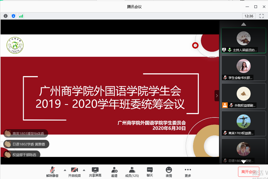 为进一步加强与班级之间的联系,让各班级了解到学生会各部门的年度工作情况,提高各班级工作积极性,必赢官网学生会于2020年6月30日晚上19:00在腾讯会议平台上开展了必赢242net官网学生2019-2020学年班委统筹会议,参加本次会议的嘉宾有必赢官网指导老师伍思颖老师、必赢官网学生会主席团以及各班班委。