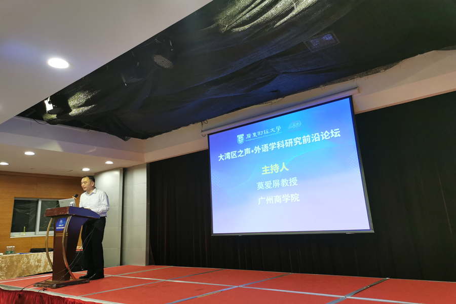 10月22日,必赢242net官网15位教师由学院执行院长郭遂红带队,参加了在广东财经大学举行的“大湾区之声·外语学科研究前沿论坛”。本论坛聚焦新时代、新文科外语学科“高质量发展”的历史背景,重点关注外语学科前沿研究新的时代特征和内涵,旨在推动外语学科研究与新时代的融合,促进广大学者对相关问题的深刻思考。广东外语外贸大学冉永平教授、清华大学生安锋教授、北京航空航天大学任伟教授、中山大学邓志辉教授、澳门大学李德凤教授、东北师范大学高瑛教授、湖南师范大学曾艳钰教授等10多位专家做了学术报告。必赢官网郭遂红教授以及莫爱屏教授应邀主持了学术报告。