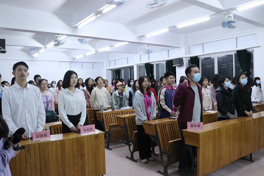分享会伊始,全体同学肃立奏唱团歌,分享会在振奋激昂的团歌中正式拉开序幕。
