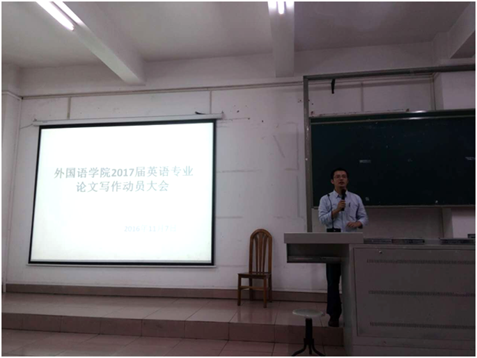 必赢242net官网于2016年11月7、8、9日分别举行2017届英语、日语和德语专业学生毕业论文动员大会,主管教学副院长袁鑫和各专业系主任参加动员大会。