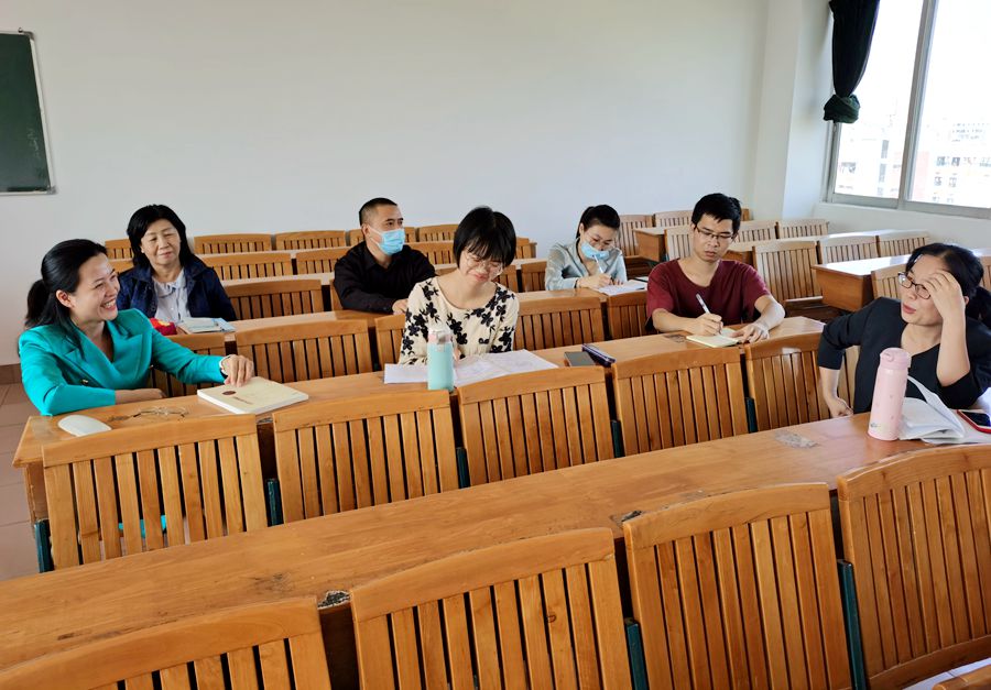 课后,参与观摩课的老师在三教605课室进行是课程研讨,会议由李亮晶老师主持。研讨会采取还原——点评——重构三个环节进行。李亮晶老师对本课程的教学过程及教学内容进行了回顾,在场的各位老师也对教学过程中的优点进行了分析和点评,同时也总结了本次课在教学设计上存在的不足。老师们一致认为,毛老师课前准备充分,课程设计完整、步骤清晰、背景知识丰富、英语表达流畅、时间把控准确、课件制作精美,体现出老师较高的职业素养。同时教师们也指出本堂课存在的一些问题,例如,挑选的视频播放时间偏长,且难度较大,建议老师可以利用超星平台提前发放本节课要看的视频,呈现其中的重要词汇以扫清听读的障碍,课堂上则进行分组展示,或设置更多的开放性问题,这样既可以利用线上教学资源丰富线下教学活动,又可以提高学生的课堂学习积极性,真正达到以学生为中心的授课目的。另外,本门课程属于文化传播类的课程,对于课程思政的开展有着天然的优势,老师在课程设计上,应该要更好地发挥这一优势,丰富课程内容,让学生了解如何做好中国文化的对外宣传。最后,李亮晶老师对本次研讨课进行总结。