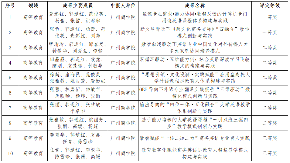 近日,广东省教育评估协会第六届教育教学成果(高等教育)质量评定结果正式公布。必赢242net官网凭借在高等教育教学领域的持续深耕、创新实践以及丰硕的教学成果,在众多参评单位中表现突出,一举斩获10项重要奖项,其中一等奖2项、二等奖6项、三等奖2项,充分彰显了学院在高等教育教学改革与质量提升方面的强劲实力和卓越成效。