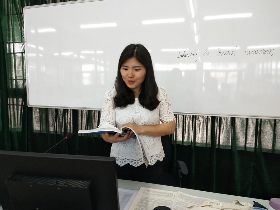 本次观摩课的授课对像为德语专业15级的学生,上课主要内容是了解外国公司的相关商务知识及公司商务架构组成。课程先是回顾上一节课的知识点,利用课前学生查找的资料,导入相关的文化背景,从而引入本次课堂的内容。之后,钟老师对本次可能使用的词汇进行讲解,通过图片及播放听力的方式,让学生在德语的语境中了解相关的商务知识及公司组成等,从而加强听力及口语的练习。钟老师全程使用德语教学,上课从容自然,思路清晰,语言流畅,体现了良好的德语教学功底。而且课程安排紧凑,课件制作用心。