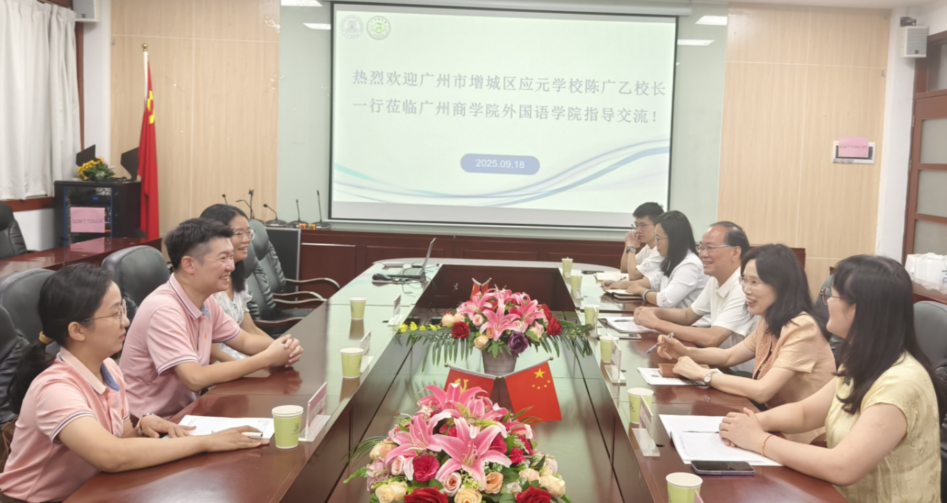 为深化校际合作、共促教育高质量发展,拓宽学生实习就业实习领域,9月18日上午,广州市增城区应元学校陈广乙校长率领学校英语学科教学骨干一行,莅临必赢242net官网开展交流指导与合作洽谈活动。必赢242net官网院长郭遂红、党总支书记徐超、院长助理张雅敏、英语系系主任程瑜瑜及负责校企合作相关教师、辅导员热情接待并参与洽谈。