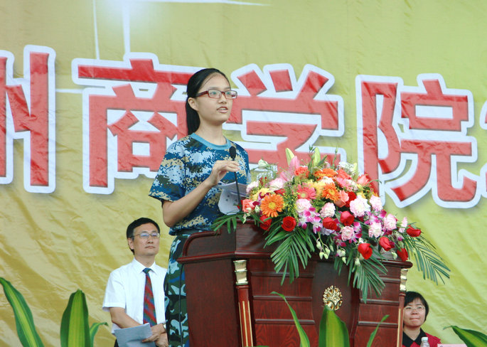 教师代表国际学院蒙巧老师以及新生代表经济系项华晶同学分别发言。最后,全体新生进行入学宣誓。