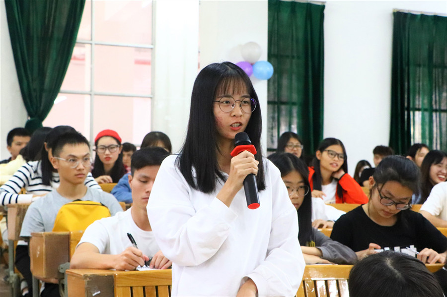 为创新备考方式,提高复习效率,潘文晗通过分享手机教学平台的英语四级阅读、听力等复习资料,让更多的学生可以利用碎片化时间进行学习。她指出,近年来大学英语四级考试的翻译题着重体现了国家坚定文化自信的政策,因此希望同学们多关注时事新闻和中国文化的英文介绍节目,在日常积累中提高英语的综合应用水平。刘素芬认为,英语学习兴趣是最好的老师,最好方法就是多听、多读与多写。李冰冰则强调,在考前冲刺时段可以多进行限时写作或阅读,通过模拟实战的训练来提高做题的效率与效果。交流会采用访谈节目的方式,在轻松的氛围中,鼓励学生积极参与讨论,给学生提供了更为有效的外语学习方法和建议。