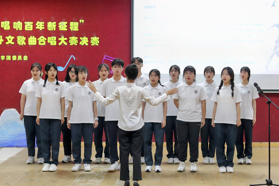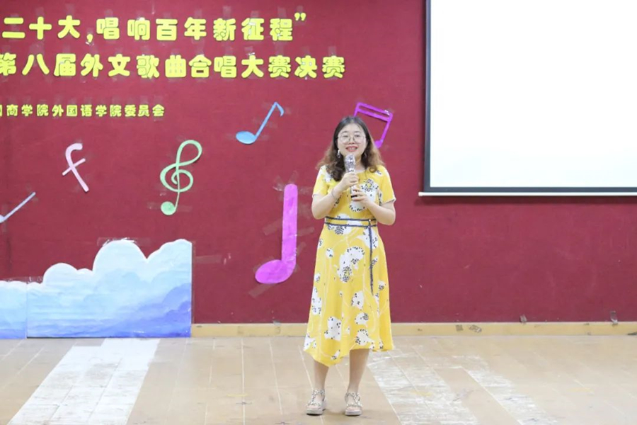 舞蹈组合拾壹队首先带来了开场舞蹈《Step back》,富有韵律与力量的舞步拉开了决赛的序幕。活动中,音乐演唱嘉宾练宝靖带来歌曲《奔跑》,烘托了现场比赛的气氛。各队伍成员神采奕奕,团结合作,用英语、日语在舞台上尽情高歌。其中,获得一等奖的爱会消失对不队,演绎了经典曲目《Something just like this》。饱满热情的情绪、雄浑有力的歌声和朴实动人的嗓音表达出青年们为理想而奋斗,不畏前方荆棘,怀揣梦想奋进于时光长河中的坚定。获得二等奖的辣妹子不怕辣队,带来曲目《パプリカ》,传统的服饰让观众与评委更加近距离地观看视听盛宴,她们甜美烂漫的嗓音唱出了心中的热情与真诚。田晶晶最后进行总结发言。她表明本次比赛举办的意义非凡,不同语言的歌曲不仅展现了外院的文艺色彩,更展示出外院学子的青春与活力。