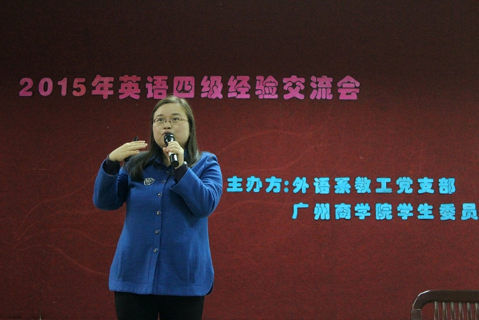 为给即将面临大学英语四级考试的学生做好备考指导,潘文晗为同学们讲解了四级考试的流程、形式、题型及训练技巧,帮助学生们更好地去熟悉四级考试的流程和考试方法,既增强了学生们的信心,也为众多有计划参与考试的同学指明了方向。2013级法律系的黎可程和2014级会计系的陈晓霜为同学们分享她们的学习方法和参加考试的经验,为同学们作了很好的学习的榜样。