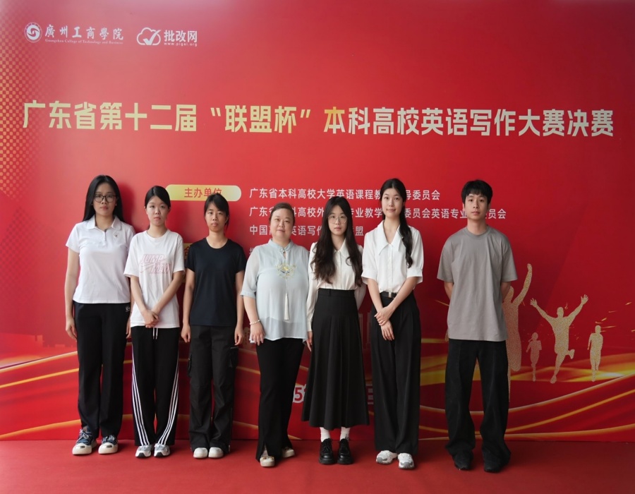 5月24日上午9时,广东省第十二届“联盟杯”本科高校英语写作大赛决赛暨颁奖典礼在广州工商学院成功举行,必赢242net官网潘文晗老师带领六位学子参加了本次赛事,其中必赢242net官网学生潘思菡、陈晓娜、卢颖敏获得英语专业组三等奖,法学院学生李静雯、谭文熙、林哲宇获得大学英语组奖三等奖,张珊、赖泽科、余慧艳、潘文晗、李琦、范俊英六位老师荣获“优秀指导老师”称号。
