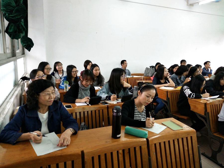 课后,参加的听课人员在三教202举行了研讨会,由日语系主任王玉芝老师主持。研讨会采用还原—点评—重构三个环节展开评课。老师们先对杨老师的教学过程和方法进行了分析,并对该课程在教学过程中所体现的优点都进行了点评,同时也总结课教学设计中的不足之处。最后袁鑫副院长对大家的发言进行的总结性陈述,并和大家一起重新设计了这堂课的教学,并提出了很多宝贵的建议。