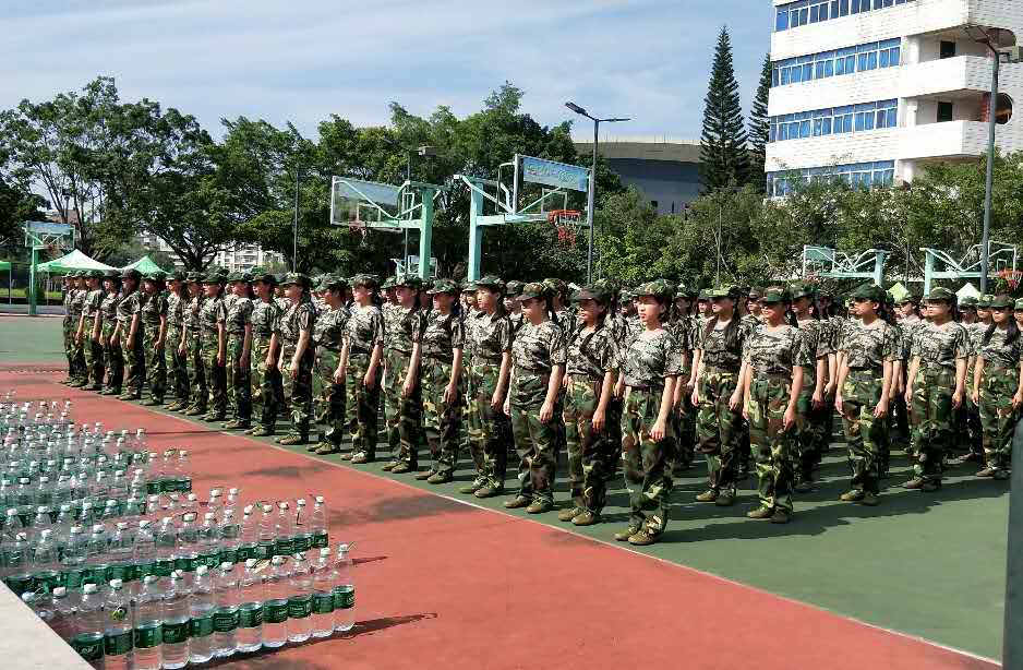 透过篮球场我们可以看到新生们训练的场景,笔直的站立,一切都是那么地井然有序;就像军人那样:听党指挥、能打胜仗、作风优良。