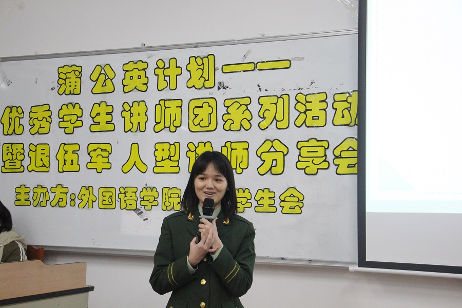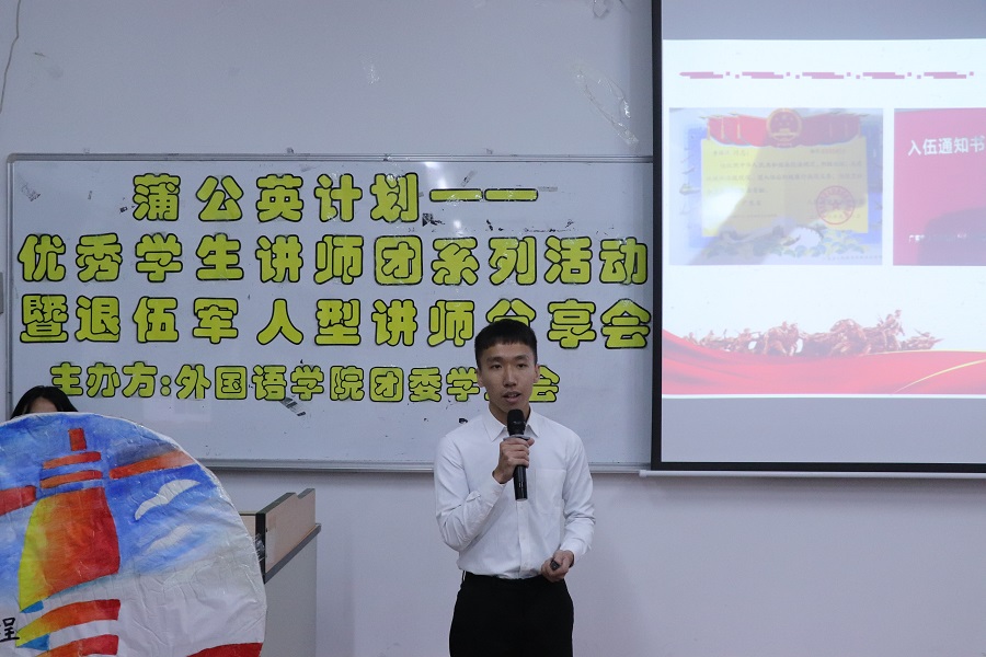 铮铮铁骨战沙场,气宇轩昂斗志扬。为弘扬军人的优秀精神,增强必赢242net官网学子的责任感和使命感,必赢242net官网团委学生会于12月17日19:00在三教105开展必赢242net官网蒲公英计划——优秀学生讲师团系列活动暨退伍军人型讲师分享会。出席本次分享会的嘉宾有必赢242net官网党总支徐超书记、必赢242net官网18级辅导员李嘉欣、19级辅导员谢清玲以及20级辅导员蔡文蝶。