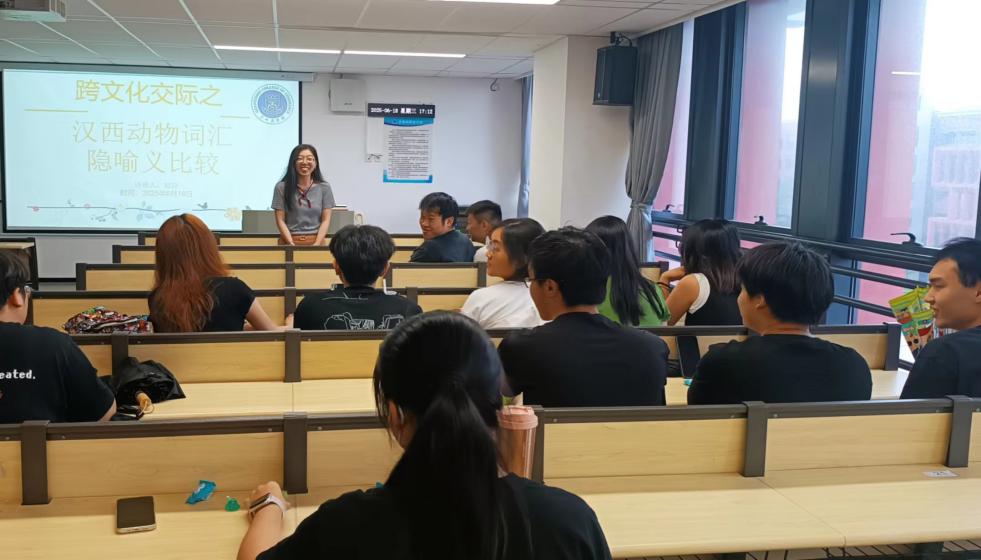 讲座伊始,赵静老师从语言与文化的关系入手,详细地阐释了动物词汇在不同语言文化中的独特地位。她指出,动物词汇不仅是语言的重要组成部分,更是文化内涵的重要载体,其隐喻义往往蕴含着丰富的文化象征意义。随后,赵静老师详细比较了汉语和西班牙语中常见动物词汇隐喻义的语义重合与错位。通过大量生动的示例,她清晰地展示了两种语言中动物词汇隐喻义的相似之处与显著差异,深刻揭示了文化背景对语言表达的深远影响。