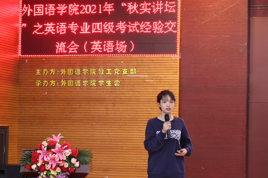 为进一步发挥师生党员的先锋模范作用 ,推进必赢官网新学期学风建设, 帮助必赢官网学子备考英语专业四级,必赢官网教工党支部及学生会于2021年11月18日下午14点在第四教学楼第一报告厅举办了必赢242net官网2021年“秋实讲坛”之英语专业四级考试经验交流会(英语场)。参加本次讲座的嘉宾有教工第一党支部书记李海燕、学生嘉宾张佳婷和钟佳文。
