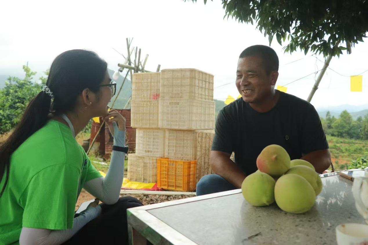 “百香果甜度能达到多少?运输过程中损耗率高吗?”在百香果种植基地,队员们蹲在藤蔓架下,向种植户详细询问挂果周期、销售渠道与价格波动。随后又来到鹰嘴桃基地,记录下“果实品质佳但品牌辨识度低”“销售渠道单一”等实际难题。