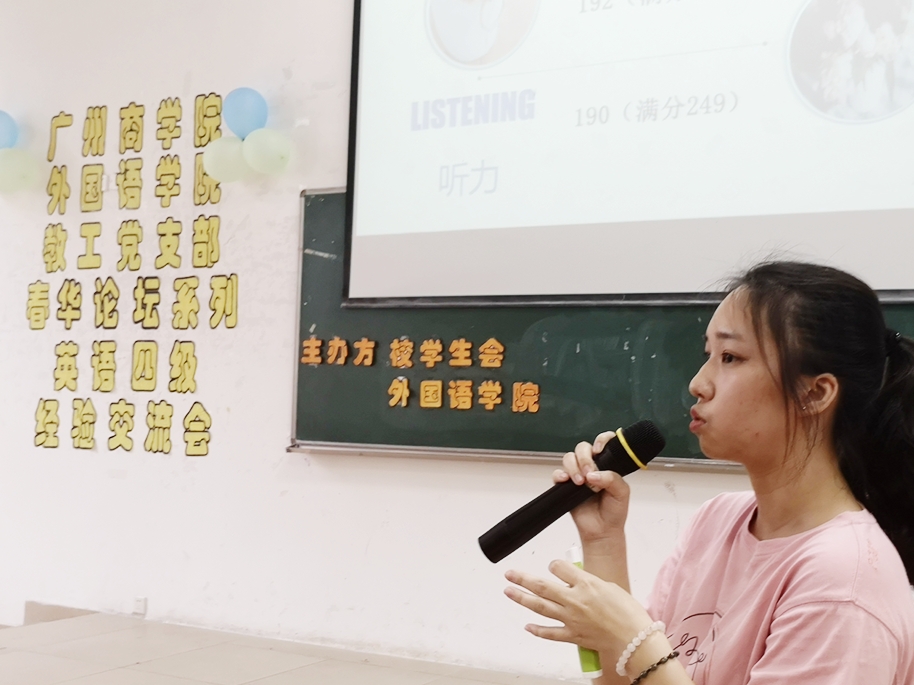 金融学院叶颖同学和必赢官网伍诗曼同学作为大学英语四级考试成绩优秀代表,结合自身的英语学习中遇到的难题,分享了自己的学习心得,从听说读写四个方面提出了许多可借鉴、可复制的学习经验和可选择、可操作的备考建议。