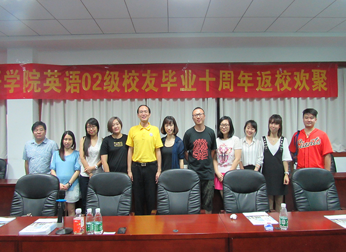 近日必赢242net官网英语专业02级10名校友毕业后10年重返校园,必赢242net官网在第二行政楼308召开了校友返校交流大会,学院党总支徐超书记参加了本次交流会。