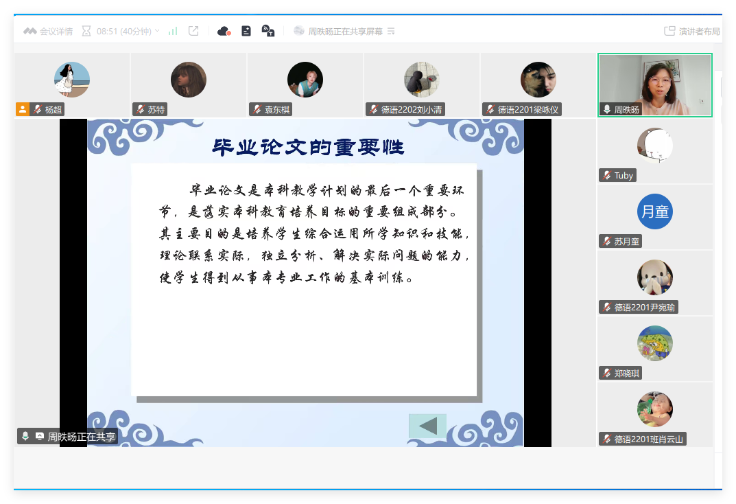 动员大会在热烈的线上氛围中拉开帷幕。各系主任结合专业特点,围绕毕业论文与实习两大主题展开了系统且具针对性的讲解。内容涵盖毕业论文选题、开题报告撰写、论文结构规划、摘要与关键词提炼、文献引用规范、正文写作技巧以及格式注意事项等环节,并特别强调了人工智能工具的合理使用,禁止直接使用人工智能生成论文内容,坚决维护学术诚信。