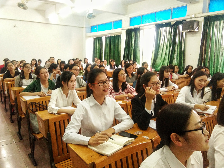 梁鸿在宣讲会上