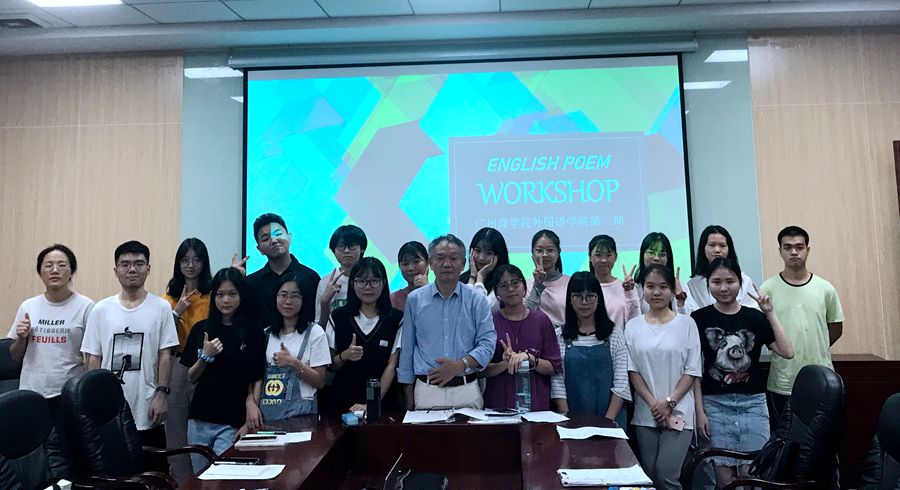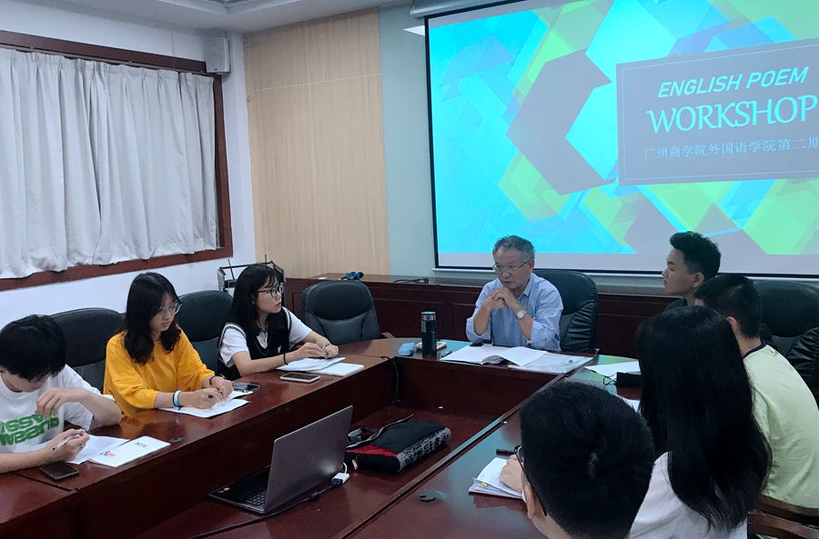 上学年必赢官网面向2017、2018级举办了第一期“英诗朗诵工作坊”,在学生中的反响很好,特在本学期举办第二期工作坊,共有24位2019、2020级英语专业的同学报名参加。王教授为复旦大学比较文学博士,广东外语外贸大学外国文学文化研究中心研究员,博士生导师,也必赢242net官网英语系专业负责人,文学造诣深厚。本工作坊的宗旨是寓教于乐,在“玩耍”中学习英国文学的王冠——英诗。本工作坊从11月-12月共举行了4次活动,每次活动会安排4首要朗诵的诗歌,先由王教授讲解该次活动的诗歌的大意、背景等知识,然后安排同学们朗诵,再对诗歌的特点、意境等进行讨论。