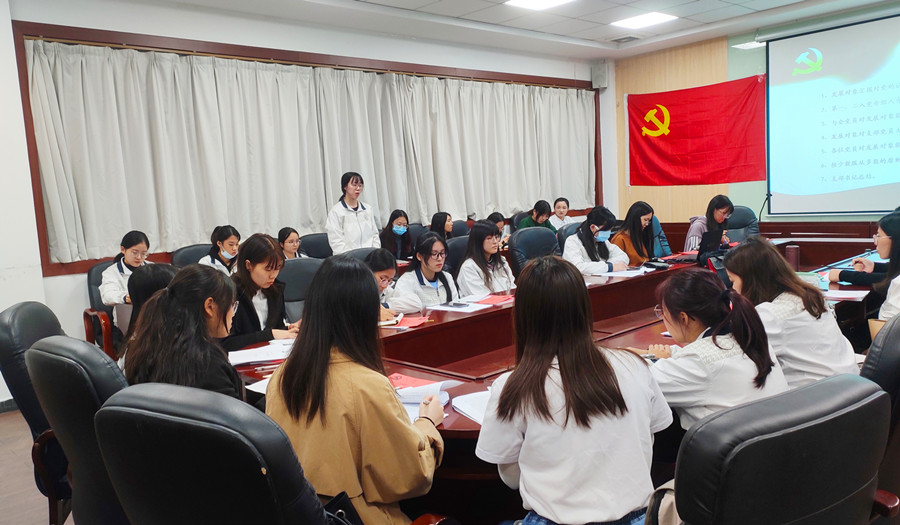 会议伊始,党支部书记黄士库向大家介绍接收预备党员通表大会的议程,会议主要分为两个部分,第一部分是发展对象转预备党员的汇报、表决,第二部分是预备党员的入党宣誓教育。紧接着,20位重点发展对象依次进行三分钟的自我陈述,从思想、学习、工作、生活等方面汇报自己的情况,真挚地表达了入党的决心和态度。每一位发展对象都准备了详细的汇报,她们声音洪亮,落落大方,充分展示了一名中共党员应该有的自信和气魄。在每一个发展对象完成汇报后,第一入党介绍人党支部书记黄士库、第二介绍人党支部副书记刘丽以及与会党员同志都对是否同意其发展为预备党员叙述意见。随后,每一位重点发展对象对会议讨论情况表明态度。经过无记名投票,20名重点发展对象顺利成为中共预备党员并加入17级学生党支部大家庭,大家都为他们献上的热烈的掌声,党支部书记黄士库为她们佩戴党员徽章,并带领大家宣读入党誓词。最后,由支部书记黄士库总结此次会议,本次大会在合影留念中顺利结束。