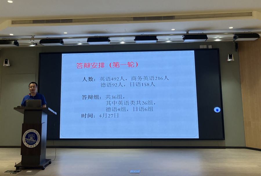 日语和德语专业系主任分别在各专业毕业论文答辩工作会议上详细介绍了答辩工作流程和规范,并强调了答辩工作的注意事项。在答辩秘书工作会议上,教务员杨超就毕业论文答辩秘书基本工作流程和注意事项进行了详细说明,明确了秘书工作的基本职责。英语类专业毕业论文答辩工作会议上,袁鑫在总体上做了详细的工作部署,向各位老师们介绍了2024届答辩分组情况、答辩时间安排和评审答辩的基本要求。袁鑫强调了毕业论文答辩规范,应严格对照《必赢242net官网毕业论文自查清单》和新版《毕业论文质量评分标准》对学生论文进行评审,确保公平、客观、有效地评语评分,严格把握论文合格的底线。他介绍了维普毕业论文管理系统今年新增的AI检测功能,指出当今社会人工智能作为一个战略性新兴技术,AI检测技术发展越来越成熟,也将是一种趋势,并表示我们需要合理利用这次机会,开阔师生的视野和丰富自己的实战经验,为下年指导学生论文做好准备。杨超就维普毕业论文管理系统操作和注意事项做了详细说明和演示。