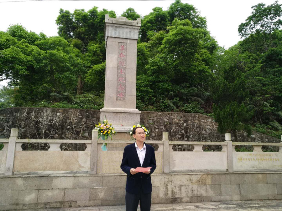 “青山绿水长留生前浩气,苍松翠柏堪慰逝后英灵”。最后,党总支徐超书记在革命烈士墓碑前做了总结讲话。徐超书记以“抚今追昔,饮水思源”作为切入点展开了对往昔、今朝和未来三个重要部分的重点阐述。他号召现场所有学生要做到以下三点:一、要永远牢记在血雨腥风的战争岁月,无数革命烈士为民族解放事业,国家和平统一伟业赴汤蹈火,舍生取义的历史;二、要坚定共产主义的理想信念,弘扬革命先烈们的革命精神,继承和发扬革命烈士忠于党,忠于人民的崇高品质,树立正确的世界观、人生观和价值观。三、要勤学、修德、明辨、笃行,坚持练就过硬本领,勇于创新创造,矢志艰苦奋斗,锤炼高尚品格为实现中华民族的伟大复兴的中国梦做贡献。
