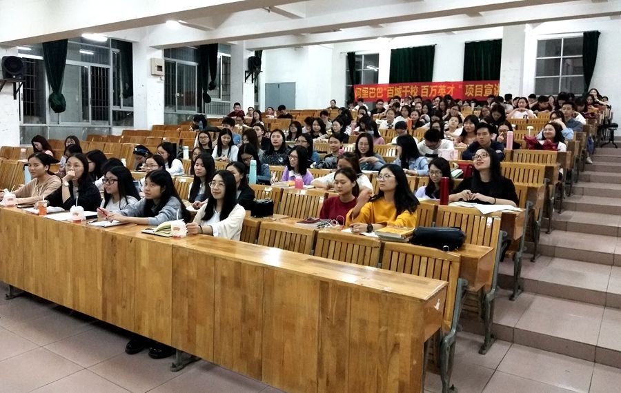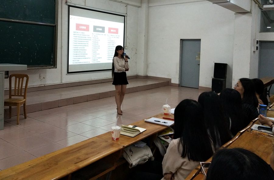 本次宣讲会邀请了阿里巴巴华南地区讲师、广州新思路教育总监、拥有15年网络营销经验的资深企业人员洪斌老师,以及新思路教育集团的马倩倩老师,为在场学生分享跨境电商知识及本次项目内容。本次讲座共吸引了200多名同学到场参加。洪总监先是给同学们分析目前国内外电子商务的运营态势,指出跨境电商国际站的兴起和迅猛发展为我国跨境电商事业提供了很好的就业平台。目前跨境电商行业人员需求量大,有外语类专长的同学更是各大跨境电商企业争先录用的人才,同学们更应该抓紧机遇,合理规划自己日后的职业生涯。接着,马倩倩就 “阿里巴巴‘百城千校,百万英才’”项目进行了宣讲。