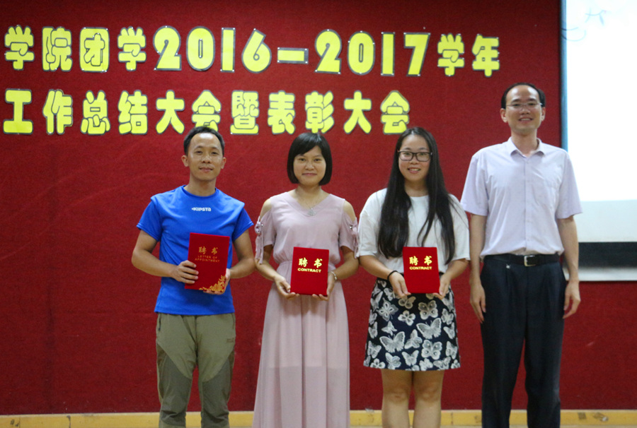 又是一年盛夏季,又是一年期末时。转眼间,一年时光匆匆而逝。为总结过去一年工作的进步与不足,从而更好的为必赢242net官网师生服务。必赢242net官网团委和学生会于2017年6月25日在第一教学楼206召开了2016-2017学年团学工作总结大会暨表彰大会。出席本次大会的嘉宾有必赢242net官网党总支书记徐超、必赢242net官网团委书记刘万里、必赢242net官网学生会指导老师林蔚、16级辅导员黄玉亭、康大职业教育学院应用外语系辅导员潘日佳。