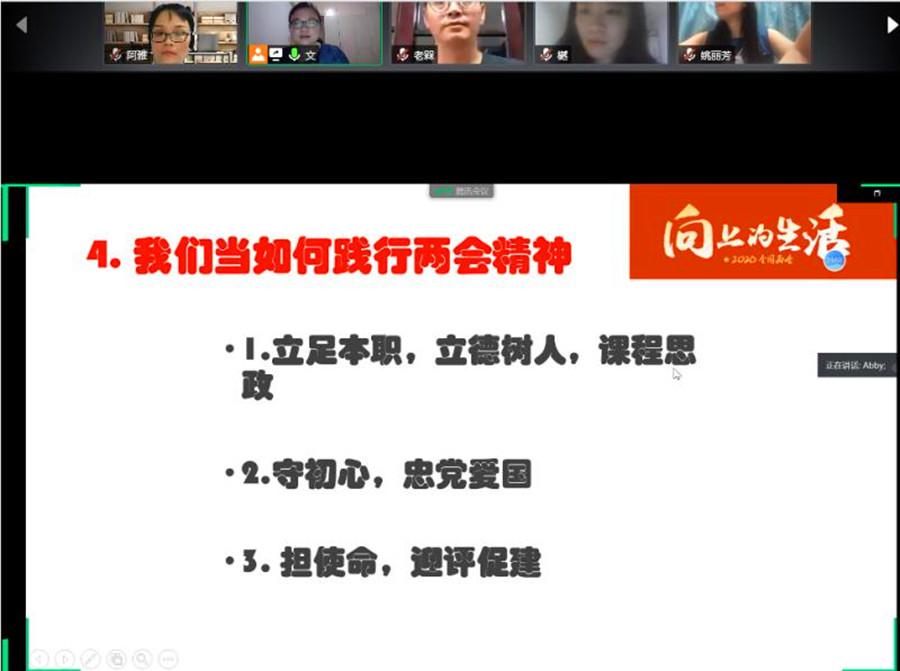 6月12日晚,必赢242net官网教工第二党支部通过腾讯会议召开线上党员大会。会议由支部书记潘文晗主持,支部全体党员参加了本次活动。