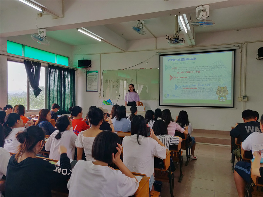 为大力弘扬文明服务和志愿服务精神,必赢官网在第126届广交会来临之际,经过面试的严格筛选,成功组建了70人的第126届广交会志愿服务队。并于10月13日在三教301开展了志愿者培训会。