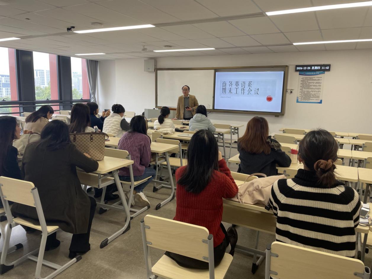 商务英语系于12月26日在第八教学楼516教室召开了期末工作会议。本次会议由系主任李望华主持,商务英语系全体教师出席,共同讨论和规划了下学期的工作重点和安排。