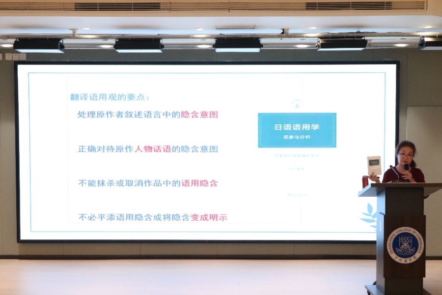 讲座伊始,刘教授说明了目前高年级学生在毕业论文选题上存在的困惑,并由此导入了一个在选题时可供参考的理论,即本次讲座的主题——日语语用学。她首先就语用学的起源、创始人、发展历史以及定义进行了简明扼要的介绍,指出语用学主要研究语言在特定语境中的使用及其与使用者之间的关系,并强调通过语用学的研究,人们可以更加深入地理解语言的交际功能和社会意义。