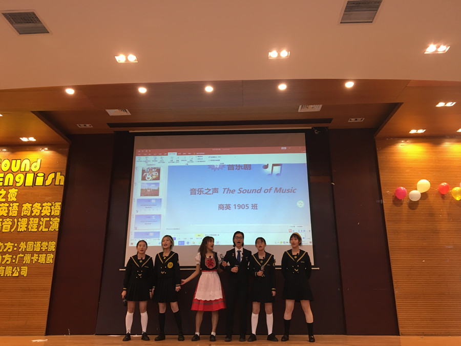 入围年级汇演的11组节目陆续为在座的观众带来了精彩纷呈的表演。商务英语1902班的音乐剧《后妈茶话会》是本次汇演的开场节目,“后妈”们妖艳动人,妙语连珠,时而瞠目怒视,时而引吭高歌,精彩的表演,流利的英语,张弛有度的语调赢得了阵阵掌声;商英1904和1901班的配音节目《神偷奶爸3》诙谐幽默,引人入胜;英语1905班的《头脑特工队》各类情绪大臣冲突连连,学生们的精彩表演为现场的观众带来了一场名副其实的“头脑风暴”。