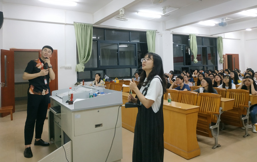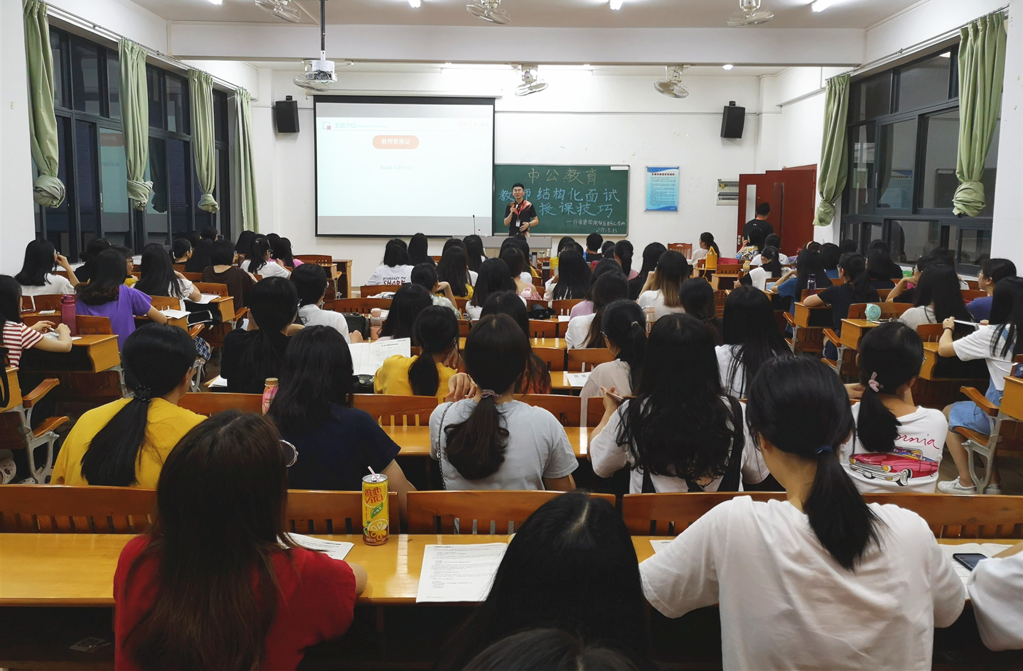 为进一步提高就业指导工作的实效性,做到就业服务工作体系化、课程化、精细化,5月13日晚19:00,必赢官网于四教408开展师范技能培训系列活动第一期——“教师资格证结构化面试与授课技巧”专题培训。此次活动邀请了中公教育陕西研究院讲师曹煜杭作为主讲嘉宾,16级辅导员戴玮、郑灿玲出席现场,共有150多名学生参与了培训。