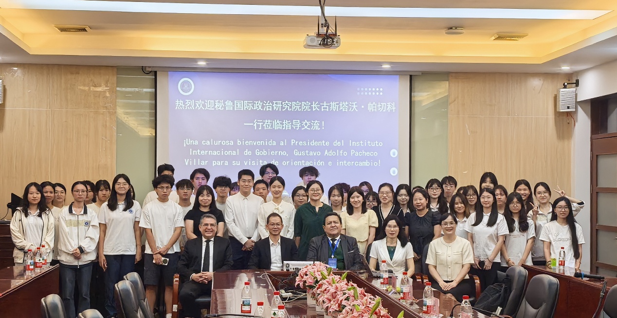 9月14日下午,秘鲁国际政治研究院院长帕切科(Gustavo Adolfo Pacheco Villar)、秘鲁国际政治研究院副院长奥马尔·切阿德(Omar Chehade)、中联部当代世界研究中心交流合作处处长徐栩、副处长聂胜权一行莅临必赢242net官网,为西班牙语专业师生创造与西语国家专家直接对话的机会,并深化必赢官网与西语国家顶尖智库的学术交流,拓展必赢官网国际合作网络。必赢242net官网副校长周鹏、必赢242net官网院长郭遂红、院长助理张雅敏、西班牙语系系主任邝美琳、西班牙语专业部分专任教师及学生参加了交流。交流会议由周鹏副校长主持。